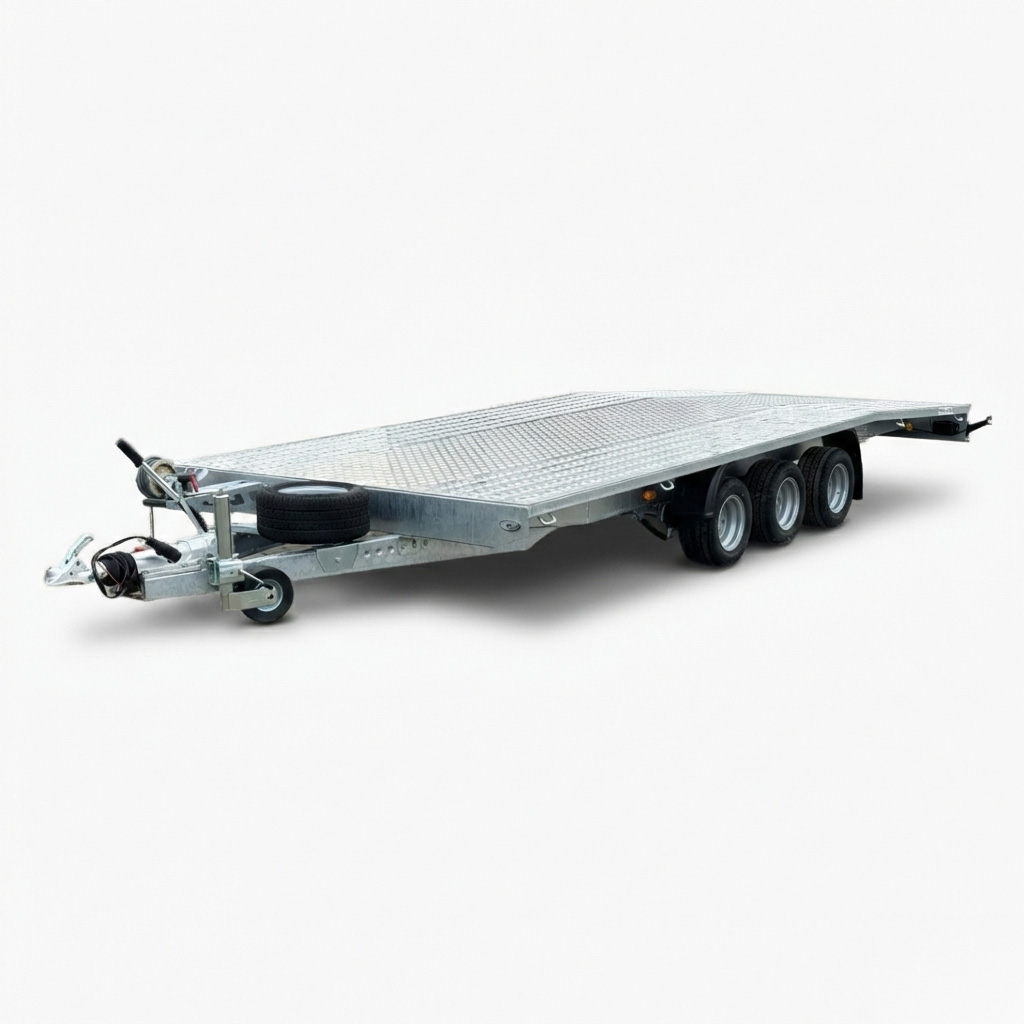 Júpíter er öflug þriggja hásinga bílaflutningakerra með 5.0×2.1 metra innanmál, hönnuð fyrir hámarks stöðugleika og mikla burðargetu. Kerran er búin sérhæfðu LOHR festingarkerfi og heitgalvaniseruðum undirvagni sem tryggir örugga flutninga við krefjandi aðstæður.